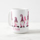 gnomos caprichosos sosteniendo cintas de sensibilización sobre el cáncer de mama rosadas. Personalice fácilmente el nombre con sólo unos cuantos clics.