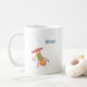 Fun personalized cocoa mug for kids with a cartoon monkey hanging upside down on a trapeze .Look into our collection for more circus theme mug .