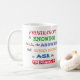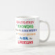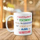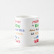 Esta colorida taza dice "La frustración es conocer todas las respuestas, pero nadie se molesta en hacer las preguntas". El texto está en colores de rojo, azul, verde, marrón y negro, y en varios tipos de letra. La cita está impresa en dos lados de la taza. ¡Seguro que traes una sonrisa donde sea que la vean!
