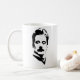 Una taza que ofrece una cita del compositor conocido Giacomo Puccini, acompañado por un retrato blanco y negro en el dorso.