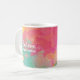 Cita alegre e inspiradora para la mañana, "¡Cree en un buen café!" Este es un diseño que presenta palabras de sabiduría para los amantes del café en todas partes en busca de esa perfecta infusión matutina. El diseño tiene un fondo floral abstracto y colorido en tonos pastel de rosa, amarillo y turquesa. La fuente es blanca brillante. El color de la fuente se puede personalizar fácilmente en la sección de herramientas de diseño de Zazzle. Otros diseños disponibles.