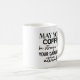 Cita humorística sobre la fuerza del café comparada con los desafíos de la crianza, estilizada con fuentes artísticas. Perfecto para los amantes del café o para los padres que buscan motivación en las rutinas diarias.