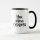 Una taza de café en blanco y negro con "Hot Mess Express" en ella.