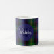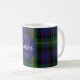 Montaje de café monogramado hecho en un tradicional y colorido clan escocés Watson lona estampado tartán. Un círculo azul tiene un monograma y un nombre familiar. Personalice el monograma y el nombre que se adapte a sus necesidades.