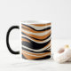 Esta taza única presenta un patrón similar al del tigre, combinando tonos vibrantes de negro y naranja en una composición dinámica y fluida.