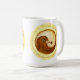 Clásico tazón de café yin Yang palomas de la paz dorada. Este es un diseño de paz en varios idiomas que he actualizado recientemente de un original que creé hace unos 25 años. Se hizo famoso en las insignias de botón, postales y camisetas. El original fue creado en Letraset - si alguien lo recuerda!? Ahora disponible de nuevo en una variedad de estilos de imagen para el siglo XXI!! ¡Educativo y práctico, y un diseño sorprendente! ¿Qué no te gusta? :