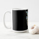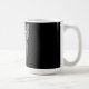 An imaginary gemstone flower composed of a large opal, tiny pearls, and a turquoise butterfly, decorate this pretty mug.
