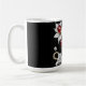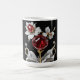 An imaginary flower design composed of a ruby gemstone bud surrounded by snow white blooms and leaves, covers this unique mug.
