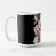 An imaginary gemstone flower composed of a pink diamond bud surrounded by large pink and white petals covers this mug.