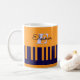 Rellene su pausa para el café con esta vibrante taza de piano. Con un diseño moderno de teclado naranja y piano azul, la taza puede ser personalizada con un nombre inicial y un elegante monograma. La atractiva taza de té es una elegante idea de regalo para los amantes de la música, ya sea en el estudio, en casa o en la oficina.