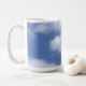 White fluffy clouds are scattered across a bright blue sky. The image conveys a sense of peace and openness.