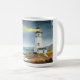 A serene watercolor painting of a majestic white lighthouse standing on a rocky shore. This atmospheric coastal illustration brings a sense of peace and nautical charm, perfect for lovers of the sea and maritime adventures.