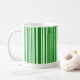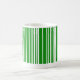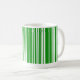 Diseño simple que ofrece las rayas verdes al azar similares a un código de barras. Este diseño se puede poner en una gama de estilos de la taza de café, incluyendo el vidrio esmerilado y las tazas del viaje. El color de fondo se puede cambiar para dar a estas rayas una diversa mirada. sgb01
