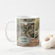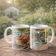 Coffee before gardening, personal morning garden with robin bird, photo mug.