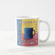 Indulte en nuestra serie de Coffee Break. Este diseño cuenta con un bonito conjunto de tazas azules con un fondo animado de rojo, amarillo y azul, creando una sinfonía visual para los amantes del café. Arte Qzik