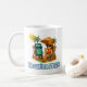 A cheerful and colorful illustration featuring a woman enjoying a coffee break alongside a friendly, personified smartphone on a tropical beach. Both relax under a palm-thatched umbrella, wearing sunglasses and smiling, as the bright sun warms the scene with a joyful glow. This charming image celebrates life’s simple pleasures—like the scent of fresh coffee and whimsical company.