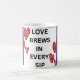 "El amor se frena en cada sorbo" simboliza la idea de que el amor, como el café, es algo que se debe saborear y disfrutar lentamente. Cada sorbo representa un momento de conexión y calidez, al igual que los pequeños y significativos momentos de una relación. Así como el café revigoriza y reconforta, el amor aporta energía y comodidad a nuestras vidas. La cita captura la esencia del amor como una presencia constante y deliciosa en nuestras rutinas diarias.