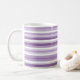 El tazón de café se muestra en una impresión de rayas moradas multicolor. Personalizar este artículo o elige otro estilo de taza o compra como está.