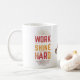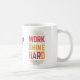 "Estén motivados con cada sorbo de nuestra taza de café 'Work Hard Shine Hard'. Esta taza, elaborada con cerámica de alta calidad, está diseñada para mantener tus bebidas favoritas a la temperatura perfecta mientras enfrentas tus tareas diarias. El eslogan audaz, expuesto de manera destacada en ambos lados, sirve como un recordatorio constante para poner en el esfuerzo y dejar brillar sus logros. Ya sea que empieces la mañana o tomes un descanso muy necesario, esta taza es tu destino para la inspiración y el estilo".