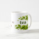 A clean and minimalist classic white mug featuring the phrase “coffee or tea” with lightly scattered coffee beans and fresh tea leaves. Designed to blend seamlessly with the white ceramic surface for a refined, modern look. Perfect for everyday coffee or tea moments and a great gift for coffee and tea lovers.