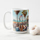 Perfecto regalo para los amantes del viaje y del café. La pintura acuarela captura maravillosamente un camión de comida vendiendo café en Venice Beach, California. El camión es vibrante y está decorado de forma artística con coloridos murales y motivos relacionados con la playa, estacionado en el bullicioso paseo marítimo. El fondo está formado por el océano y las palmeras que se balancean suavemente, lo que resume la esencia del entorno de la playa. Alrededor del camión, una gran cantidad de bañistas, patinadores y turistas disfrutan de su café, lo que contribuye a la animada atmósfera. La escena es esencialmente Venice Beach, con gente sentada en las tumbonas o sentados en el paseo marítimo bajo el sol de California. En el cuadro se aprecia una paleta de colores brillantes y soleados que resaltan la atmósfera relajada y la cultura ecléctica de este icónico hotspot californiano.
