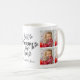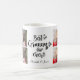 La taza de café es refinada y refinada, con la cita "Mejor abuela de la historia" y una flor rosa caliente. Crea un regalo único y personal y personaliza esta taza de collage con los nombres de los nietos y agrega fotos de los nietos. Esta taza de café única y personalizada será perfecta como regalo de cumpleaños o Día de la Madre para tu abuela.