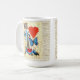 El collage romántico con la torre Eiffel, París Francia de París del vintage con las tarjetas del día de San Valentín rojas ama los globos del corazón y mariposa y pájaro y flor de lis azules bonitos del pavo real, en un fondo antiguo de la postal. Copyright Oconnart.