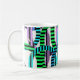 It's a computer programming art suitable for coffee mugs. It's a colourful geometric pattern design created by python code.
