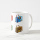Este diseño es cuatro maletas. Las maletas son cada una de un color diferente. Este diseño de cuatro maletas se ve genial en este Mug