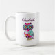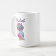 Personalizable de búho floral de color Mug ilustracion adorable de un búho peculiar colorido con estampado floral como cuerpo. Los colores de este diseño son el magenta, el cartón, el turquesa, el violeta y el blanco.