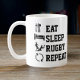 Eat Sleep Rugby Repeat Sport adicto al café divertido barro de Ricaso