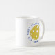 Eat Sleep Pickleball Repeat Personalizado mug tiene un estilo retro con el dicho: comer. dormir. repetir. envuelto alrededor de amarillo un pickleball. Personalízalo con tu nombre o iniciales. El regalo perfecto para un jugador de pickleball, familias o un entrenador de pickleball.