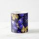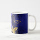 Composición de lujosas mariposas de zafiro y joyas de oro sobre fondo de textura azul.