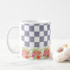 Cheques en Bloom Mug - los colores son azul, rosa, rojo y verde.