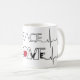 Taza de café con corazón rojo de Paz y Amor para tu hogar, apartamento o oficina. Gran regalo de cumpleaños o agradecimiento para mamá o papá. Comparte con familiares y amigos en las redes sociales.