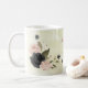 Hermosa taza romántica con flores rosadas y negras y algunas hojas bonitas .