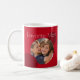 Cambia el texto y agrega tres fotos a esta taza en tonos de rojo con grandes lunares. ¡Para mamá o papá!