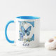 Una taza de café personalizada en tonos de azul con mariposa coordinada, que presenta el monograma de la letra "E". Personalízala fácilmente con tu nombre o crea un regalo único para tus seres queridos. Espacio suficiente para agregar una cita o mensaje adicional o incluso un fondo. Esta taza también viene en diferentes estilos y combinaciones de colores. Explora la colección para ver ejemplos de este tipo de letra en los diferentes estilos y tamaños de taza.