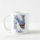 Una taza de café personalizada en tonos de azul con mariposa coordinada, que presenta el monograma de la letra "N". Personalízala fácilmente con tu nombre o crea un regalo único para tus seres queridos. Espacio suficiente para agregar una cita o mensaje adicional o incluso un fondo. Esta taza también viene en diferentes estilos y combinaciones de colores. Explora la colección para ver ejemplos de este tipo de letra en los diferentes estilos y tamaños de taza.
