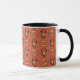 Una elegante taza de café con labio y asa negros y un patrón de motivos tradicionales egipcios, peces y cocodrilos, sobre un fondo rojo oxidado. Parte de la colección "Egipcio" de Posh y Painterly, este patrón se puede ajustar fácilmente a cualquier taza.