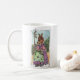 Dibujo cómico original de Becky Rizzi del conejo vestido con la jaula de pájaros