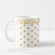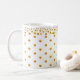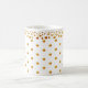 Elegante y hermosa taza con decoración de confeti en punto dorado sobre fondo blanco. El diseño dorado es sólo una imagen. Disfruta de esta taza de lujo.