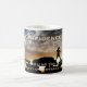 "Confianza" excursionismo foto-taza de café. Decir es "Confianza: la sensación que tienes antes de entender la situación por completo". Nuestra original foto de silueta de excursionista sobre rocas peligrosas. Todos los derechos reservados © 2012 Alan & Marcia Socolik.