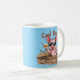 Piglet in sunglasses sitting in the mud with a cocktail and the slogan "Cool Bacon" on a blue background coffee mug.