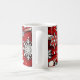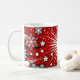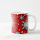 Un bonito fondo rojo rodeado de baudias y copos de nieve al estilo del arte pop