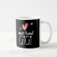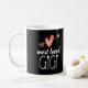 Diseño de taza de café Gigi con una fuente de corazón con un corazón rosa y una flecha sobre un fondo negro. Regalo perfecto para el día de los abuelos o el día de la madre. Visita nuestra tienda para ver esta taza en una gran variedad de nombres de abuela.