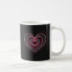 Taza de café y té con un corazón de neón brillante sobre un fondo oscuro. El efecto de neón brillante crea un contraste audaz y le da al diseño una estética nocturna vibrante. Una divertida taza para todos los días para café, té o chocolate caliente, y un buen regalo para cualquiera que disfrute del estilo neón, gráficos modernos y diseños simples y audaces.