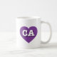 Esta taza presenta un corazón morado que contiene las letras audaces, blancas y altas del funda CA, la abreviatura oficial de California, el estado dorado.