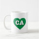 Esta taza presenta un vibrante corazón verde que contiene las letras audaces, blancas y altas del funda CA, la abreviatura oficial de California, el estado dorado.