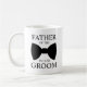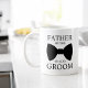 El diseño presenta una taza de café moderna con "Padre del novio", corbata de lazo y fecha de la boda.